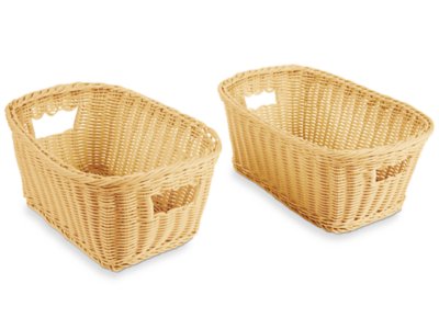 Tough and dependable classroom storage—with a soft and natural look! These flexible baskets are made of thick, securely woven plastic that’s designed to last and last—without fraying. Perfect for storing everything from manipulatives to storytime materials, the rugged baskets have built-in handles for easy toting…and they’re dishwasher-safe to make cleaning a cinch! Baskets measure 13 1/2"l x 8 1/2"w x 6"h.