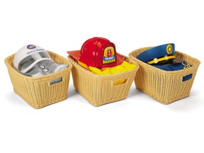 Tough and dependable classroom storage—with a soft and natural look! These flexible baskets are made of thick, securely woven plastic that’s designed to last and last—without fraying. Perfectly sized for our Help-Yourself Dress-Up Center, the rugged baskets have built-in handles for easy toting…and they’re dishwasher-safe to make cleaning a cinch! Baskets measure 14 1/2"l x 11"w x 7 1/2"h.