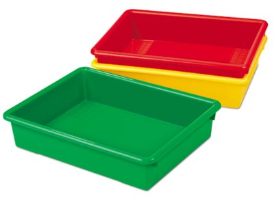 Perfect for use with our File and Store Mobile Cart, our paper trays are ideal for turning in homework, storing worksheets and more! Sized for 8 1/2" x 11" or 9" x 12" paper. Trays come in green, red and yellow; each tray measures 14"l x 11"w x 3"h.
