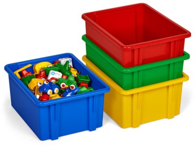 These extra-large bins have plenty of room for a variety of toys and classroom supplies! Plus, they’re made of heavy-duty plastic for years of classroom use. Bins measure 6 3/4" high; tops measure 11" x 13 3/4" and bottoms measure approximately 9 1/8" x 10 7/8".
