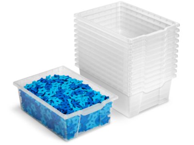 End the “What’s inside?” guessing game with our See-Inside Bins. Designed with little ones’ safety in mind, our bins are ideal for storing toys, manipulatives, supplies—you name it! Each plastic bin measures 16 3/4" x 12 1/4" x 6" high.