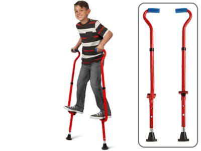 Heighten the fun—with our sturdy, lightweight stilts! Featuring easy-grip handles, no-slip footrests and rugged rubber feet, the stilts are fully adjustable to suit kids’ height and skill level—so super stilt walkers can rise up to 17" off the ground and reach unbelievable new heights! The ergonomic steel stilts adjust from 37" to 46" tall and support up to 180 pounds. Easy assembly.