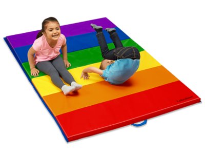 Little ones can tumble, jump or roll head over heels on our thick, safe mats! The mats have shock-absorbent, 1 1/2" padding that gives children a soft, cushioned landing every time…and the rugged vinyl surface makes them super-durable and easy to clean. You can even connect 2 or more mats to create a larger play area! Mats fold for convenient storage.