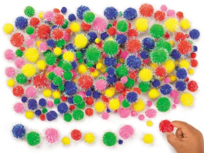 Our sparkly pom-poms add a colorful, 3-dimensional touch to arts & crafts projects of all kinds—from classroom collages to more personal creations! You get 300 pom-poms in 5 colors and 5 sizes.