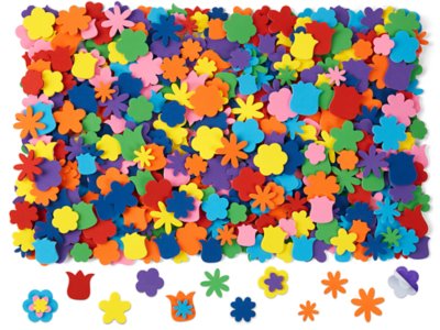Our fun, crafty flowers add new dimension to collage creations! You get 840 self-adhesive foam flowers in 7 designs, 8 colors and 3 sizes. Largest flower measures 1 1/4".