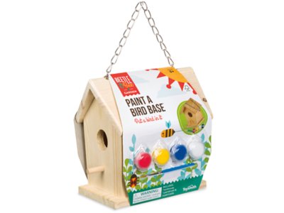 Kids love flexing their artistic skills with this preassembled birdhouse that comes with everything they need to create their own backyard bird haven! The kit comes with everything children need to decorate the wooden birdhouse, including 4 paint pots, a paintbrush and a hanging chain. Birdhouse measures 7".