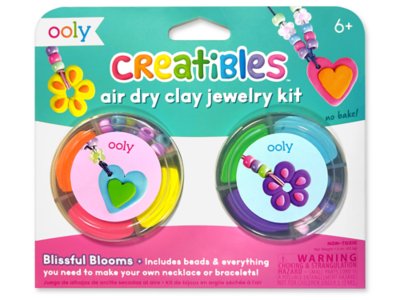 This jewelry-making kit includes everything kids need to create their own necklaces or bracelets using no-bake, air-dry clay and beads! Little ones can sculpt their own sweet heart and flower charms, then use the included yarn and beads to complete their DIY set. Kit includes 16 flower beads, 6 nontoxic clay colors, 70 pony beads, elastic yarn, a clay shaping tool, 4 safety clasps and easy-to-follow instructions; yarn measures 11 yards.