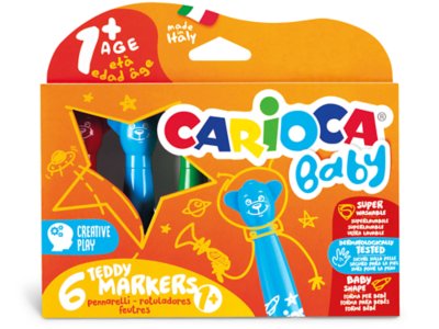 Transform little artists’ creativity with these cute & colorful markers that feature adorable bear-shaped caps! The chunky markers are easy to grip and encourage drawing with durable nibs that withstand enthusiastic hands. Nontoxic, super-washable ink wipes off skin and fabrics with water—no soap needed! Choke-proof caps ensure safety; comes in a handy pull-out paper tray. You get 6 markers in 6 colors; each marker measures 5 3/4".