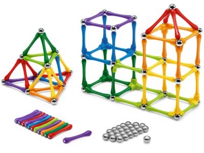 Kids create tons of 3-D constructions with these magnetic builders! Children simply connect the magnetic ends of the rods to the metal balls to build in any direction and use corner pieces to make 90-degree angles—for all sorts of imaginative structures! The set includes 180 pieces (119 plastic rods and corners in 7 colors, plus 61 metal balls) and a guide. Rods measure 2 1/4" in length.