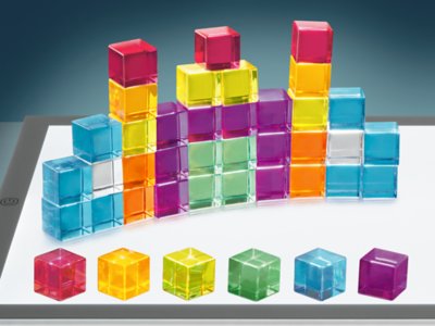 The creative possibilities are endless with these mesmerizing, crystal-like cubes! Designed to inspire the imagination, the 1" cubes feature a captivating translucent design—so light shines through in a rainbow of colors as kids build. Plus, they’re great for use on light tables and are a cinch to incorporate into learning activities—from counting and sorting to color mixing and more! You get 100 acrylic cubes in 10 colors in a wooden tray. Tray measures 10 3/4"l x 10 3/4"w x 1 1/4"h.