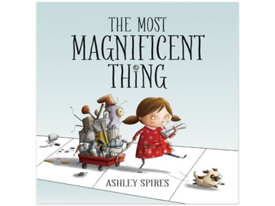 This charming, funny, vividly illustrated story about a girl, her best canine pal and how things don’t always go exactly as planned is a perfect depiction of the rewards of perseverance and creativity! When the girl decides she’s going to make “the most magnificent thing,” she already knows exactly what it’s going to look like and how it will work. But things go awry—and she quits in anger and frustration. How can she renew her enthusiasm and complete her project? Hardcover book by Ashley Spires is 44 pages.