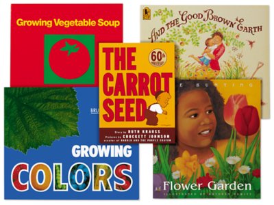 The perfect complement to our Growing Things Theme Box, this terrific library has 5 super-engaging paperback books specially selected to strengthen children’s understanding of plants and how they grow! The library contains both fiction and nonfiction titles, including the children’s classic The Carrot Seed…and the vibrant photos, illustrations and simple text help kids explore how to grow fruits, vegetables and more. Titles may vary.
