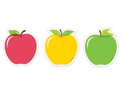 These colorful apple accents will brighten any room. They are perfect for bulletin board displays, classroom calendars, labels, desk and cubby tags, designating class groups, student books, scrapbooks, gift tags and more! You can even use them for patterning, graphing and sorting activities, as well as for flash cards and game pieces. Includes 36 pieces with 12 each of 3 designs; each accent measures 3".