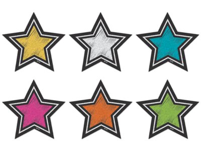 Use these bright chalk-colored star mini accents to dress up classroom walls and doors…label bins and desks…decorate bulletin boards…fill in monthly calendars…as game pieces…and more! Pack includes 36 accents in 6 colors; each accent measures approximately 2 5/8".