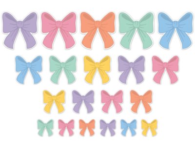 Add a touch of charm to your space with these adorable mini accents! The classic bows in soft, dreamy hues and a variety of sizes bring a whimsical vibe to your classroom. Perfect for adorning walls and doors, personalizing bins and desks, or adding a stylish flair to bulletin boards. The pack includes 60 accents in 6 colors and 4 sizes ranging from 2 5/8" to 6 1/8".