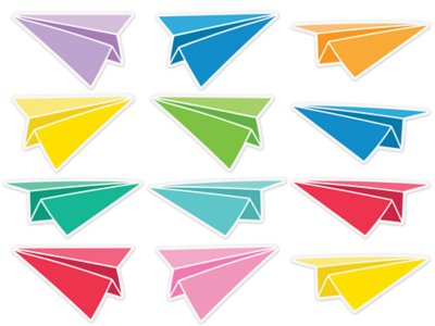 These full-color illustrated cutouts add the perfect finishing touches to any room! Enhance displays…play games…create desk, name and cubby tags…and more—with versatile accents featuring joy-inspiring paper airplanes! Pack includes 36 durable, die-cut cardstock accents in various colors and designs; largest accents measure 4" x 6 1/2".