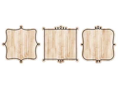 Bring a fresh look to your displays with these accents featuring stylish black loops on a neutral wood background. Perfect for class messages, writing assignments, learning center activities, bulletin boards and more, the accents can also be used as quick and easy labels on cubbies, student folders, supply bins and binders. Pack includes 36 pieces in 3 designs; largest pieces measure approximately 5 5/8" x 5 5/8".