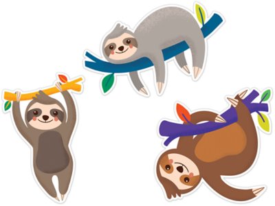 Enhance displays…create cubby, desk and name tags…add finishing touches to bulletin boards…and more—with adorable sloth accents that will bring a friendly touch to your classroom all year long! Pack includes 36 cardstock accents in 3 designs; largest accents measure 3 4/5" x 5 9/10".