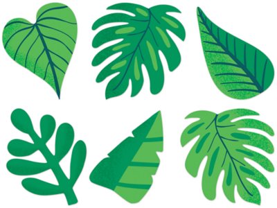 Decorate any area of your classroom with green leaf accents—ideal for enhancing displays, using as desk and cubby tags, playing games and much more! Printed on durable cardstock, the accents feature a global vibe that brings a fun, bright touch of the tropics to any classroom. Pack includes 36 accents in 6 designs; largest leaf measures 5 1/3" x 5 1/2".