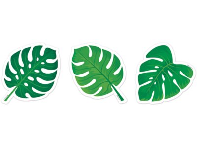 These monstera leaf accents are perfect for enhancing a variety of classroom displays, bulletin boards and student projects! And they make handy labels on cubbies, student folders, supply bins, binders and more. Plus, the vibrant leaf design makes them great for creating lush tropical displays about nature, plants, the jungle, spring and summer—you can even string them together on a ribbon for a fun pennant-style decoration. Set includes 36 accents in 3 designs; each accent measures approximately 3".