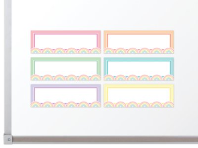 Decorate your whiteboard in a snap with these durable, reusable magnetic accents! Their write & wipe surface makes them great for labeling, and their dreamy pastel rainbows will add flair to any magnetic surface—from doors and desks to shelves and bins. Pack includes 20 magnetic accents in 6 colors; each measures approximately 1 1/2" x 4 3/4".