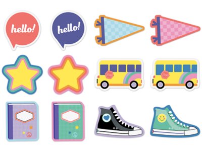 Bring the fun, colorful look of vinyl stickers to your classroom with these accents! From arts & crafts and cubby labels to whiteboard displays and game prizes, these accents can be used for just about anything in and out of the classroom all year long. Pack includes 36 accents; largest pieces measure 5" x 6".