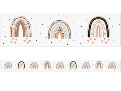 This easy-to-customize straight-edge border adds the perfect finishing touch to classroom displays! Featuring rainbows in soft, calming colors against a polka-dot background, the border can be used alone or in layers to showcase displays, class creations, bulletin boards, windows, student work and more. Pack includes 12 border strips measuring 3" x 36", for a total length of 36'.