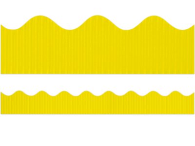 Decorating your classroom, brightening up bulletin boards with trim and preparing displays is a snap with our thick canary yellow border! Use this sturdy corrugated, pre-scalloped, fade-resistant border to create unique 3-dimensional layered designs on any flat surface. The roll measures 50' long and 2 1/4" wide; one roll will edge two 4' x 8' bulletin boards.