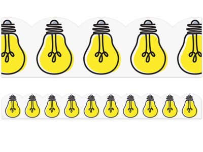Trim your bulletin boards with this “bright” light bulb border! These doodle-style light bulbs are perfect for bulletin boards highlighting student work, important announcements and essential content. Use it to create fun bulletin boards with headlines like “Let your light shine,” “Our electrifying classroom,” “We can light the world with _____” and “Watt’s happening.” Pack includes 24 border strips; each measures 3" x 24", for a total length of 48'.