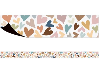 Decorate your whiteboard in a snap with this durable magnetic border! The versatile border features charming hand-drawn hearts in warm, inviting colors—use it to add flair to metal surfaces like doors, desks, shelves, bins and more! Plus, the border cuts easily with scissors to make your own custom lengths. Pack includes 12 magnetic border strips; each measures 1 1/2" x 24", for a total length of 24'.