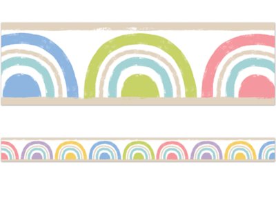 Create calming spaces and set the stage for learning success with these rainbow borders. Showcase student work, decorate bulletin boards with flair, add pizzazz to scrapbooks, crafts and projects—the possibilities are endless! The fully recyclable borders are made of durable tagstock, printed with vivid inks to resist fading and packed flat to avoid curling. Package contains 11 borders; each measures 2 3/4" x 39", for a total of 35 3/4'.