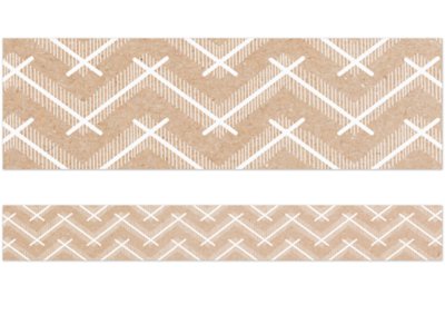 This border is a must-have! With its smart, simple design of a white chevron pattern on a handcrafted-style background, the straight-edge border can be used alone for a basic look or layered with another border for a custom designer look—versatile for use on bulletin boards in a wide variety of school settings. Pack includes 24 border strips; each measures 3" x 24", for a total length of 48'.