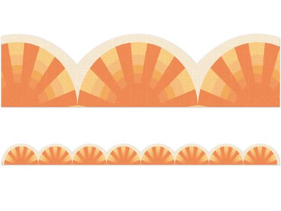 Use this vibrant scalloped border featuring a warm sunburst pattern in orange-and-yellow gradient tones to brighten up your classroom! Create fresh looks for bulletin boards, windows, walls and class projects…even mix and match with coordinating decor for a cohesive classroom theme. Pack includes 12 border strips; each measures approximately 2 3/4" x 35", for a total length of 35'.