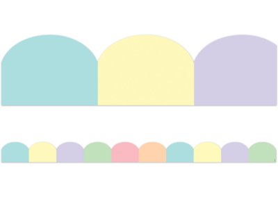 Use this pastel scalloped border featuring 6 alternating soft colors to liven up your classroom! Create fresh looks for bulletin boards, windows, walls and class projects. Pack includes 12 border strips; each measures approximately 2 1/4" x 35", for a total length of 35'.