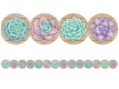 Use this succulent- and wood-inspired die-cut border to liven up your classroom! Create fresh looks for bulletin boards, windows, walls and class projects! Pack includes 12 border strips; each measures 2 3/4" x 35'', for a total length of 35'.