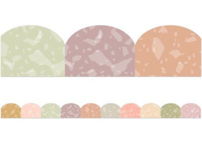 Use this scalloped border featuring warm, alternating colors with a terrazzo mosaic to create an elegant environment! Add fresh looks to bulletin boards, windows, walls and class projects…even mix and match with coordinating decor for a classroom theme. Pack includes 12 border strips; each measures approximately 2 3/4" x 35", for a total length of 35'.