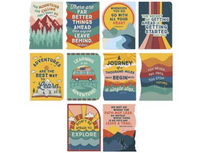 This adventure-themed bulletin board set features posters designed with colorful silhouettes and motivational quotes that serve as excellent daily inspiration for students! Set includes 10 die-cut posters; each measures 12" x 17".