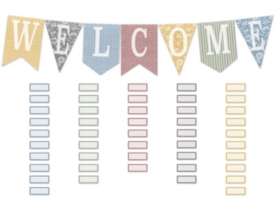 Classroom Cottage Welcome Pennants Bulletin Board Set