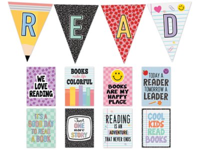 Foster a warm and inspiring space where today’s readers blossom into tomorrow’s leaders! Featuring classic school-themed elements, playful patterns and vibrant colors, these accents encourage a love of reading and create a welcoming atmosphere for all. Add them to your classroom walls, book nook, school library or hallways. Set includes 12 pieces—4 pennants and 8 posters. Pennants measure 12 1/2" x 16 1/2" and posters measure 8'' x 11''.