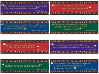 This bulletin board set educates and decorates! From Martin Luther King Jr. and Rosa Parks to Jackie Robinson and Jesse Jackson—the set includes inspirational quotations from influential Black Americans. You get 8 pieces, plus a teacher’s guide. Pieces measure 6" x 21".