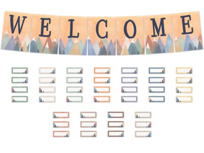 Create a welcoming classroom with inviting decor! Featuring 7 extra-large pennant letters—all with a nature-inspired, mountain-themed design—that spell “WELCOME,” this attention-grabbing bulletin board set is essential for open houses, conferences, back-to-school nights and any event where you want visitors to feel welcome. Plus, the set includes 40 blank multipurpose accents, for a total of 47 pieces. Each pennant measures 9" x 12 1/2".