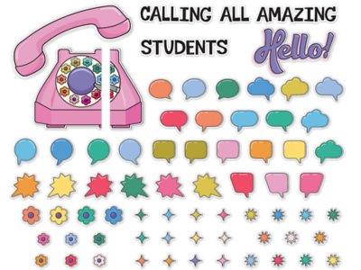 Cell-ebrate all your students’ hard work with this retro motivational bulletin board set! Dress up your bulletin board, whiteboard or wall decor with ease. Use the speech bubbles to create name labels or accentuate displays that will inspire students to keep up the good work. Set includes 71 pieces; largest piece in assembled header measures 45 3/5" x 3 1/5".