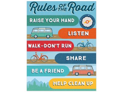 Remind students of your most important classroom rules—with this colorful poster that brings a spirit of adventure to your space! Perfect for any room, wall, door or bulletin board, the poster is printed on heavyweight cardstock and measures 17" x 22".