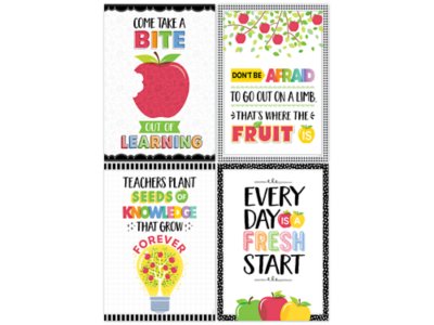 Plant the seeds for a fruitful year with the encouraging advice found in these sweet and juicy posters. The posters are perfect for wall displays, whiteboards, hallways or anywhere a little inspiration is needed. Includes 4 posters; each measures 13 3/8" x 19".
