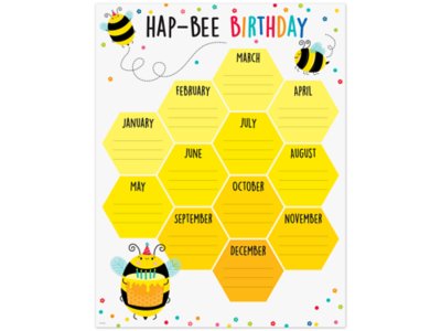 Celebrate birthdays throughout the year—with a buzzworthy birthday poster featuring a honeycomb cell for every month and space to write students’ names! Use it to decorate bulletin boards, hallways, doors and common areas. Poster measures 17" x 22" and includes activity ideas and reproducibles on back.