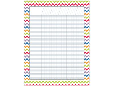 This colorful chevron-inspired incentive chart is versatile for all ages and many uses at home and at school! The chart includes space for 33 student names and 25 assignments and measures 17" x 22".