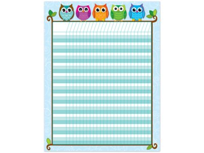 This bright, whimsical incentive chart is versatile for all ages and many uses—with a row of adorable multicolored owls that motivate students to reach their goals! The chart measures 17" x 22" and includes space for 33 student names and 25 assignments.