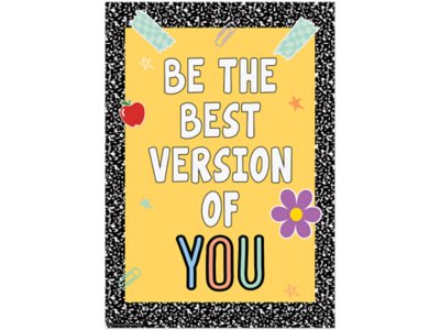 Inspire your students with a powerful message of self-improvement and confidence! This vibrant poster features a bright yellow background and a fun composition book border. Great for accenting walls, displays, cubbies, whiteboards and more. Poster measures 13 3/8" x 19".