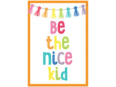 This poster features festive tassels and an inspiring message to help promote positivity and kindness—with pretty colors, fun patterns and a touch of sunshine that will make your classroom a haven of happiness! Poster measures 13 3/8" x 19".