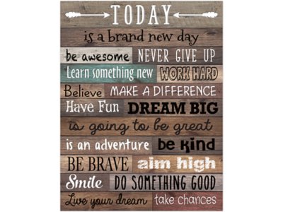 Featuring inspiring words and phrases on a rustic wood background, this homey poster is sure to bring positivity to any classroom! With related lessons and activities on back, the poster measures 17" x 22".
